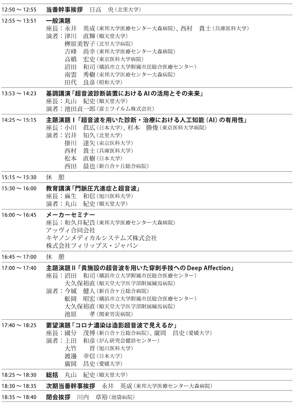 第52回 超音波ドプラ・新技術研究会のタイムテーブル